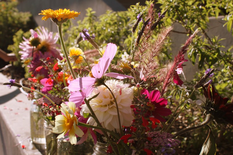 Of course all good field trips end with food, and ours was no exception. On our way back to the farm, dahlia blooms in hand, Cynthia took us by Mi Pueblo, an enormous Mexican market that featured chicken feet (in the cart of the woman in front of us), Mamey (a melon with bright orange, honey-sweet flesh), and Arroz con Leche paletas (my two favorite desserts—rice pudding and ice cream—combined to glorious effect). Back at the cottage we toasted with tamarind soda as Lisette made tortillas in our brand new tortilla press, and while we cooked our protein (mysteriously labeled “Al Pastor meat”) we still managed to throw in some love from the garden, with a sauté of zucchini, fresh corn, and nopales.