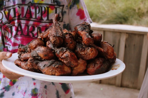 Fortunately the first thing that came up was a recipe from Heidi Swanson, creator of one of my favorite food blogs, 101 Cookbooks. I made the dough at 8am Thursday morning with fingers crossed, but I knew it had a lot to live up to—Ross’ toppings included his famous caramelized onions and mushrooms, and Phillip’s barbequed chicken and ribs are pretty incredible. Then there was the bounty from the garden to contend with—carrots that became shaved carrot salad with thyme, chard that paired with quinoa, apricots, and pine nuts, and eight kinds of greens that filled three salad bowls. To top it off we even made potato salad with blue cheese and egg salad with eggs from the chickens. (If you can imagine the fridge at this point you’ll understand why the Christmas comparison begged to be made).
