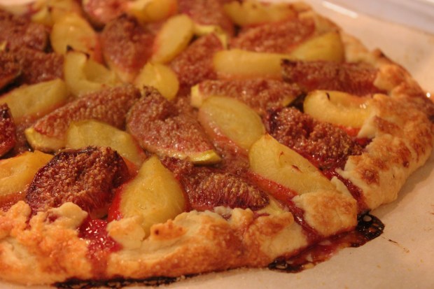 The class also ended up giving me a surprise chance to display my (non-existent) tart-making skills. While the students mingled with wine before their farm tour, Pim came up to me and, looping her arm conspiratorially through mine, declared that I would be in charge of duplicating her tart in the kitchen after she made one outside for the students. Eyes peeled I watched her every move, then I hurried inside and attempted to reenact her expert dough folds and arrangement of plums and figs. Unfortunately compared to hers (above), mine (below) looked decidedly rustic, but what it lacked in prettiness it made up for in almondy, figgy tastiness.