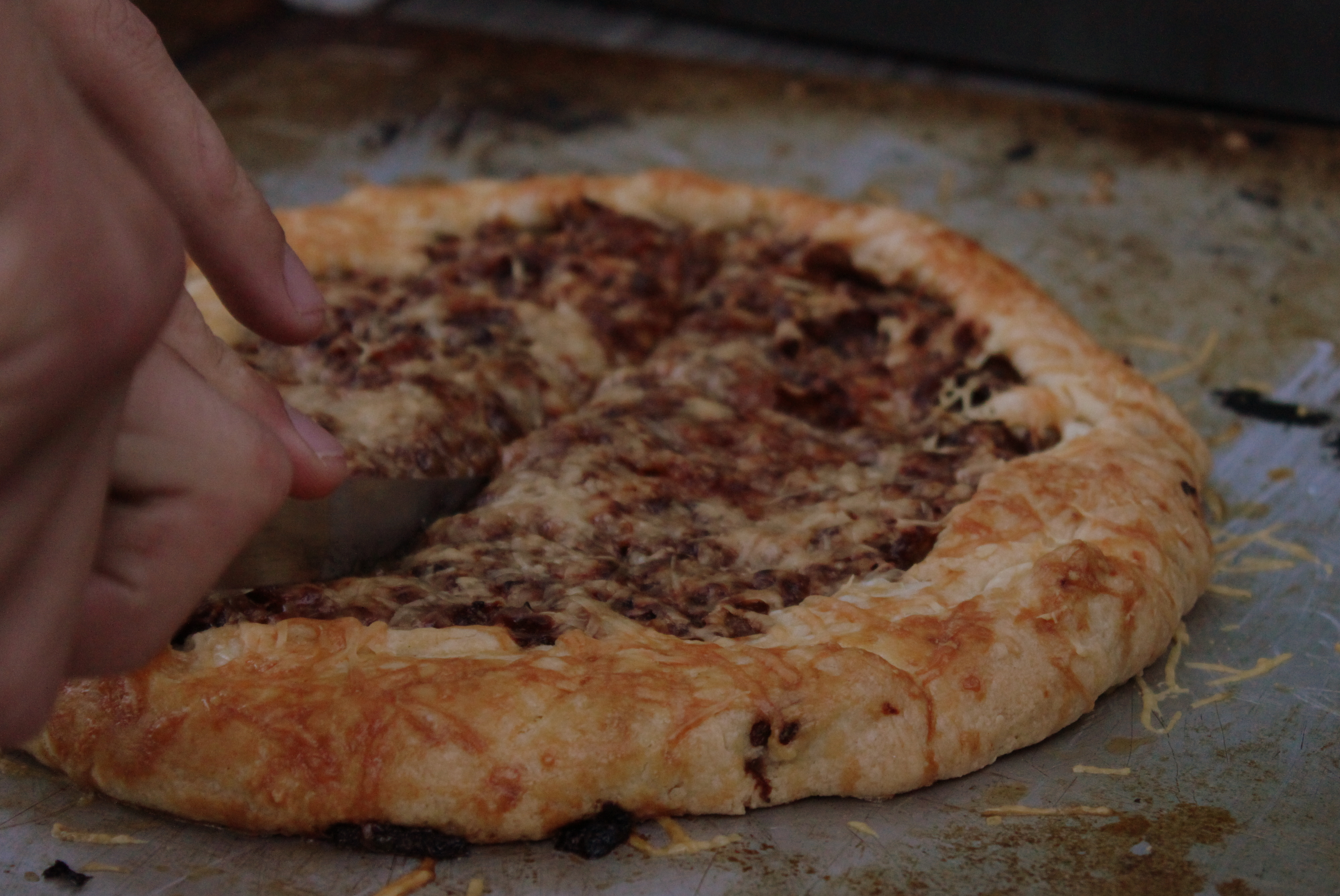 Preheat your oven to 400 degrees. Roll out the dough on a well-floured surface, shaping roughly into a circle before transferring to a cookie sheet lined with parchment paper. In a large saucepan, melt the butter and add the onions, stirring regularly until they are dark golden brown (about 45 or so minutes). Spread your caramelized onions on the dough, then fold in the edges and brush the dough with your beaten egg mixed with a little water. Finally, sprinkle your entire tart with the parmesan cheese and bake for 45 minutes.