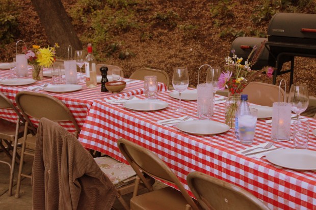 I’ve mentioned Farm Dinner before, but really it deserves its own paragraph. Every Thursday between 7 and 7:30 p.m. a rag-taggle group of farm dwellers, apprentices, and the odd visitor or ten assembles on the patio, everyone bearing food from the kitchen and glasses of wine. There’s a fire roaring in the pit and children dashing across the lawn adjacent, and the tables sport red-checkered cloths and settings for 30. Sometime around 8 p.m., just as people start eying the food and Cynthia begins to rise from her chair for the anticipated announcement, the Shivs are sighted walking down the driveway. Catherine and Shiv are our closest neighbors, and they are always preceded by a small child on a skateboard and bring the most delicious curry I have ever tasted (their British accents also lend a certain dignity to the conversational games that follow every meal).