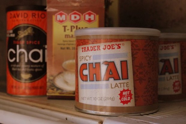 One of the benefits of chai powder (other than an insane sugar rush) is that it makes the chai latte as easy as boiling a pot of water. As a college freshman I drank chai lattes in bed, in class, as late-night snacks and morning pick-me-ups. I drank them so often, in fact, that my desire for chai began to wane. Years passed with only the occasional Starbucks visit when I went home, and then, when powdered chai was all but forgotten, I passed a display of chai latte powder in Trader Joe’s last week.