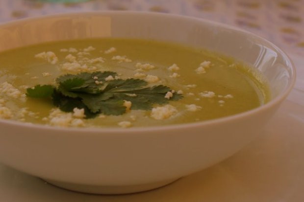 Puree warm soup in a blender in two batches, then return to pot and whisk in yogurt. Reheat if necessary and serve warm, garnished with fresh coriander and crumbled feta.