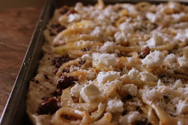 This flatbread recipe (an instant favorite I’ve made three times this week) is wonderful in its simplicity, easy to prepare but perfect for leisurely cooking. I mix the dough at some point in the afternoon, then make the spread and topping after turning out the dough for a second rise and heating the oven. It’s an old saying, the one about the journey and the destination, but I somehow keep discovering it anew.